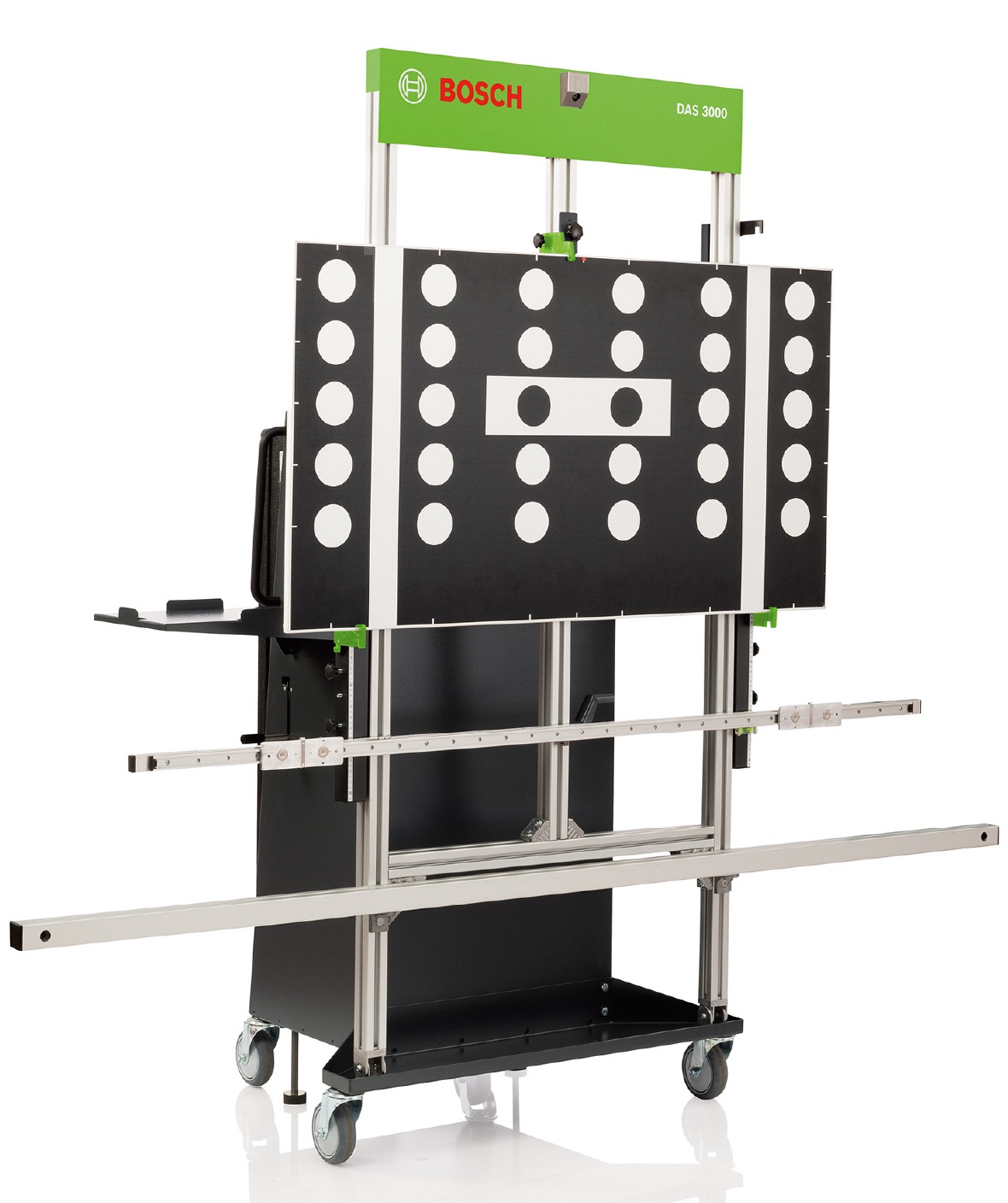 The Bosch DAS 3000 delivers precise calibration of front cameras and radar sensors to OEM standards, ensuring accuracy in collision repairs and servicing. It supports multiple calibration targets for various makes and models, including VW and universal types.